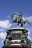 На площади Хельденплац (площадь героев) в Вене установлено сразу несколько конных статуй. Одна из них посвящена эрцгерцогу Карлу Тешенскому. В отличие от соседних памятников — здесь конь поднят на дыбы, Памятник установлен в 1865 году. Автором статуи стал австрийский скульптор Антон Доминик Фернкорн.