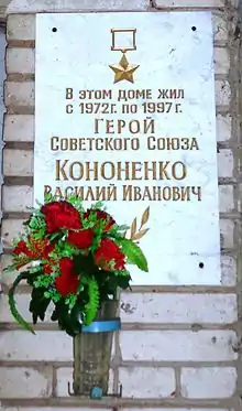 - В посёлке Монино Московской области на доме № 7 по улице Маслова, где проживал Герой Советского Союза В. И. Кононенко, установлена мемориальная доска.