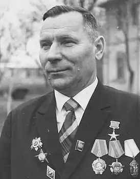 Указом Президиума Верховного Совета СССР от 7 декабря 1973 года за большие успехи, достигнутые во Всесоюзном социалистическом соревновании, и проявленную трудовую доблесть в выполнении принятых обязательств по увеличению производства и продажи государству зерна и других продуктов земледелия в 1973 году удостоен звания Героя Социалистического Труда с вручением ордена Ленина и золотой медали «Серп и Молот».