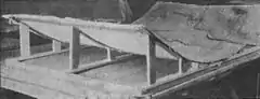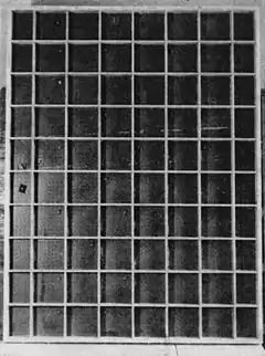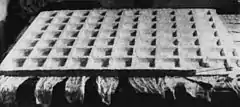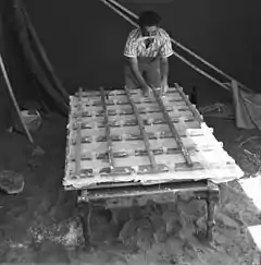 Усиливающая пластина вырезалась из перфорированной древесноволокнистой плиты. Гладкая сторона была обращена внутрь. С внешней стороны перфорации находили друг на друга. Контуры усиливались воском. Также наносился крепёж для винтов, позваляющий им вращаться на 90°. Затем плита смазывалась тонким слоем неразбавленной эмульсии без наполнителя и соединялась с изображением (ориентиром служили вбитые гвозди). Всё полностью высыхало под прессом и сразу же прикручивалось к деревянной коробке.