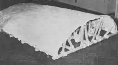 Картина лицевой стороной вниз прикреплялись за выступающие полоски марли к столу канцелярскими кнопками. Правильное положение контура обозначалось четырьмя гвоздями. После этих приготовлений на обратную сторону картины накладывался тонкий слой эмульсии, состоящей в объёмном соотношении из 1 части поливинилацетата, 2,5 части мелкого песка, 0,5 части воды. Следом за раствором накладывалась подходящая по размерам стеклоткань, которая впрессовывалась в него пористым резиновым валиком. Картине давали высохнуть, после чего наносили толщиной около 0,5 см следующий слой раствора, состоящего в объёмном соотношении из 1 части эмульсии, 1,5 части тротуарного мела, 0,5 части песка, 0,5 части воды. При нанесении этого слоя особое внимание уделялось его выравниванию. Края нагружались кусочками мрамора, чтобы получить плоскую плиту[2].