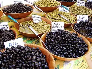 ![]() Разнообразные виды оливок на продажу | |