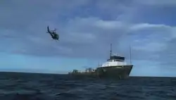 ![]() Вертолёт приближается к кораблю Kahana | |||||