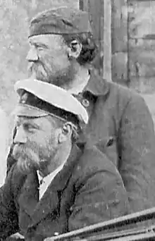 - В том, кто на этой фотографии Константинов, а кто Старк, разные источники расходятся. Согласно, подписи на фотографии в альбоме Архивная копия от 12 августа 2016 на Wayback Machine, сделанной Н. В. Штейпом, в фуражке Старк, а в шапочке Константинов. Согласно же информации Музея истории города-курорта Сочи, Штейп ошибся — в белой фуражке путейца Константинов, а Старк стоит за ним.