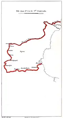 Таким образом, болгарские области отсекались от Эгейского моря и за их пределами оставались Воденско, Кукушко и Дойранско, Западная Фракия, большая часть Восточной Фракии и Родопии.