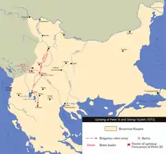 Войска новопровозглашённого царя взяли Ниш и Охрид, но потерпели поражение у Кастории. Византийские войска перешли в контрнаступление и взяли Скопье при помощи Георгия Войтеха, который предал Петра III. Затем Пётр III был взят в плен в битве и отправлен в Константинополь вместе с Войтехом. Последний умер по дороге, в то время как Пётр III был заключён в тюрьму, сначала в Константинополе, затем в Антиохии.
