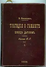 К. Р. перевёл на русский язык трагедию Ф. Шиллера «Мессинская невеста», трагедию И. В. Гёте, шекспировского «Короля Генриха IV». Автор удачного перевода шекспировского «Гамлета» на русский язык, над которым работал с 1889 по 1898 год; перевод с обширными комментариями в трёх томах был издан в 1899 году и неоднократно переиздавался.