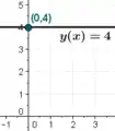 Константная числовая функция , заданная на множестве действительных чисел, является целой рациональной функцией нулевой степени или линейной функцией, график которой проходит параллельно оси абсцисс. Эта функция имеет уравнение вида , где . Такая функция является чётной на всей области определения, и поэтому её график обладает осевой симметрией относительно оси ординат. Производной любой константной функции является нулевая функция , которая является специальным случаем константных функций.