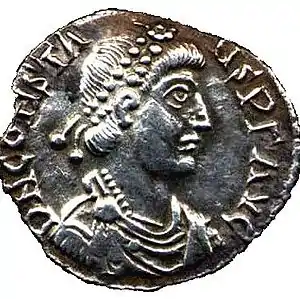 - Немногие сохранившиеся серебряные монеты Константа, скорее всего, были выпущены именно по этому случаю, как подарок (донатив) войскам. См. Roman Imperial Coinage. Vol. X. / Ed. J.P.C. Kent. London, 1994. P. 147.