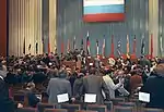 Ельцин за трибуной в зрительном зале Государственного Кремлёвского дворца