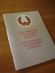 | белор. Канстытуцыя Рэспублікі Беларусь рус. Конституция Республики Беларусь | |