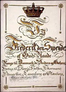В первой половине XIX века в Дании была абсолютная монархия, опиравшаяся на разветвлённый многоуровневый бюрократический аппарат. При этом к началу столетия в королевстве были проведены либеральные реформы, в том числе ликвидирована крепостная зависимость крестьян и введено всеобщее начальное образование. После Июльской революции во Франции (1830) в немецких владениях Дании — Шлезвиге и Гольштейне — усилились сепаратистские настроения, которые король Фредерик VI решил сгладить, учредив сословные представительства, два в немецких герцогствах и два на оставшейся территории королевства. Реформы продолжились в правление его племянника Кристиана VIII, который планировал октроирование конституции и внезапная болезнь и смерть которого помешала завершить реформы[1]. 20 марта 1848 года под влиянием новой революции во Франции в Копенгагене прошли демонстрации сторонников либеральных преобразований. Король Фредерик VII включил нескольких представителей либералов в правительство и поручил тому разработать проект конституции.