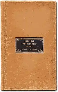 | Принятие | Делегацией Конституционного конвента Орегона 9 ноября 1857 года (проект создан 18 сентября 1857 года) |