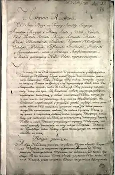 ![]() Первая страница рукописи Конституции | |