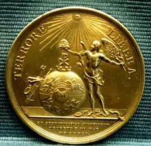 Конституция находилась в действии чуть больше года, после чего была низвержена российскими войсками вместе со шляхтой в ходе Русско-польской войны 1792 года (альтернативное название — «Война в защиту Конституции»)[64]. Завершив войны с Турцией и со Швецией, императрица Всероссийская Екатерина II обратила внимание на Речь Посполитую. Польская конституция привела её в ярость, поскольку она видела в ней угрозу российскому влиянию в стране[55][56][98]. Российская сторона рассматривала польско-литовское государства как протекторат de facto[99]. Узнав о принятии Правительственного акта, один из ведущих творцов российской внешней политики Александр Андреевич Безбородко сказал: «Худшие из возможных новостей прибыли из Варшавы: польский король стал почти суверенным»[100]. Связи польских реформистов с французской революционной Национальной ассамблеей рассматривались соседями Польши как доказательство революционного заговора и угроза абсолютизму[101][102]. Страхи европейских консерваторов выразил прусский государственный деятель Эвальд Фридрих фон Герцберг: «Проголосовав за Конституцию, поляки нанесли прусской монархии coup de grâce»[прим. 29]. Он подразумевал, что усилившаяся Речь Посполитая, вероятно, потребует от Пруссии вернуть те земли, которые были отторгнуты ею в ходе Первого раздела[100][103].