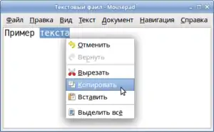 Контекстное меню с командами буфера обмена для выделенного фрагмента текста