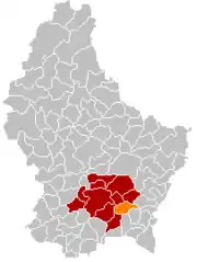 Оранжевый цвет — коммуна Контерн, красный — кантон Люксембург.