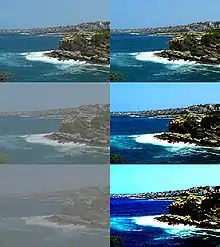 - Цветовой контраст — разновидность оптического контраста, связанная с разницей цветовых оттенков. Понятие используется в дизайне, рекламе и в фотографии («за счёт цветового контраста объект выделен…»)[4].