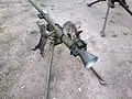 Хорошо видна контрольная площадка на гранатомёте СПГ-9: блестящая площадка в передней части ствола.
