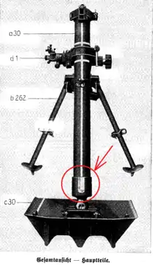 На полковых (107 мм и 120 мм) миномётах производства СССР, РФ и других стран контрольная площадка выполнена не на казённике, а в виде блестящей (неокрашенной) гладкой кольцевой поверхности снаружи трубы миномёта, между уступами.[2]