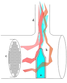 Конусное устройство выбрасывает отработанный («мятый») пар из цилиндров паровой машины в дымовую коробку, подсасывая топочные газы из дымогарных труб и создавая высокую тягу в относительно короткой дымовой трубе паровоза. Выходящий под давлением на высокой скорости пар подсасывает газы из топки.
