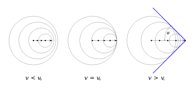Поверхность конуса Маха является огибающей системы звуковых волн, порожденных телом при движении в среде: в соответствии с принципом Гюйгенса поверхность конуса образована интерференцией звуковых волн при их суперпозиции и колебания на поверхности находятся в одной фазе — фазе сжатия, образуя ударную волну.