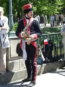 Высокая конфедератка с козырьком использовалась в ряде подразделений конницы и пехоты Варшавского герцогства и других польских формированиях эпохи Наполеоновских войн, в частности, шеволежерами Гвардии. Согласно уставу 1810 года конфедератки уланов и пехоты (вольтижёров и фузилёров) изготавливали из чёрного фетра и полотна с кожаным козырьком высотой 22,5 см и длиной боков 25 см и украшались плюмажем, оковкой, кокардами и шнурами.