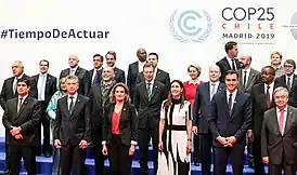 Конференция ООН по изменению климата (2019), также известная как COP25 — 25-я конференция ООН по вопросу глобального потепления. Проходила в Мадриде, Испания, с 2 по 13 декабря 2019 года под председательством чилийского правительства. Конференция должна была пройти в чилийском Сантьяго, однако впоследствии из-за возникших протестов была перенесена в Мадрид[3][4]. Организована в рамках Рамочной конвенции Организации Объединённых Наций об изменении климата (РКИК ООН), с учётом 15-го совещания сторон Киотского протокола (CMP15) и второго совещания сторон Парижского соглашения (CMA2).