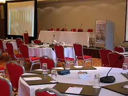Конференц-система (конгресс-система, дискуссионная система) — это комплект аудиооборудования, состоящий из центрального блока, нескольких дискуссионных пультов и обеспечивающий определённый набор функциональности для проведения конференций, съездов, заседаний, слушаний, пресс-конференций и других помещениях, в которых проводятся дискуссии. Дискуссионные пульты располагаются на столах участников заседания и, как правило, последовательно соединены друг с другом кабелем в цепочку. Центральный блок системы как правило снабжён интерфейсом системам звукоусиления и PA.