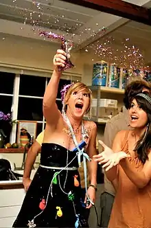 Конфетти́[1][2] (итал. confetti) — разноцветные, обычно бумажные кружочки мелкого размера, неотъемлемый атрибут праздников, в основном, балов, карнавалов, триумфальных шествий, но также дней рождения и свадебных торжеств. Конфетти осыпают друг друга участники празднеств или его сбрасывают сверху.