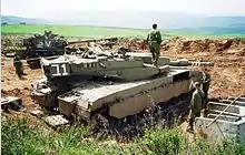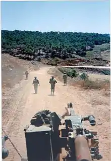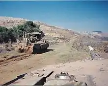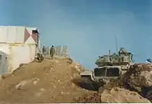 ![]() Израильские БТР приближаются к форпосту Армии Южного Ливана, 1987. | |||