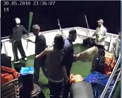 Израильской досмотровой группе спецназа[10] пассажирами корабля «Мави Мармара» (Mavi Marmara) было оказано сопротивление[11][12][4]. В результате последовавших событий были убиты 9[13][14] и ранены 30 пассажиров[15][16], ранения также получили 10-15 израильских солдат[13].