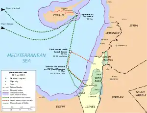 Конфликт у берегов Газы, также известный как операция «Морской бриз» — конфликт, начавшийся в ночь с 30 на 31 мая 2010 года, между Армией обороны Израиля[1] и активистами движения «Free Gaza Movement» на конвое судов, называемого также «Флотилией свободы», в тот момент когда шесть судов конвоя подошли к берегам Израиля, пытаясь прорвать израильскую блокаду сектора Газа[2][3], и были задержаны[4] израильским морским спецназом[5][6]. На трех пассажирских и трех грузовых кораблях находилось около 700 активистов и около 10 тысяч тонн гуманитарных грузов (лекарств, продовольствия и стройматериалов) для жителей сектора Газа[2][7][8][9].