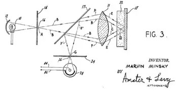 В 1950-х годах биологам понадобилось увеличить контраст изображений меченых флюорохромами объектов в толстых срезах тканей[6]. Для разрешения этой проблемы Марвин Минский, профессор Массачусетского технологического института в США, предложил использовать для флуоресцентных микроскопов конфокальную схему. В 1957 г. Минский получил на эту схему патент[7].