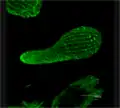 Серия конфокальных изображений (z-стек), демонстрирующих распределение актиновых филаментов в клеточной линии остеосаркомы U2OS