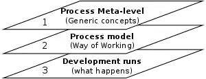 Одна и та же модель процесса многократно используется для разработки многих приложений и, таким образом, имеет множество экземпляров. Одно из возможных применений модели процесса состоит в том, чтобы предписать, как вещи должны/должны/могли бы быть сделаны в отличие от самого процесса, который действительно происходит. Модель процесса — это предвидение того, как этот процесс будет выглядеть. Каким должен быть этот процесс, будет определено в ходе фактического развития системы[10].