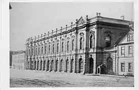 В 1860 году на старейшей площади Санкт-Петербурга, рядом с императорскими конюшнями, возникает Музей придворного экипажа. Фасад здания определяют пятнадцать дубовых арок каретника на первом этаже, на втором этаже располагается коллекционный зал каретно-экипажного музея. Среди уникальных императорских экипажей музея находилась взорванная народовольцами карета Александра II. После крушения империи и установления власти Временного правительства музей в сентябре 1917 года был разграблен, многие ценные экспонаты пропали[1].