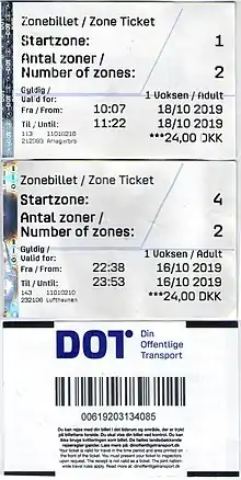 До 30 июня 2015 года действовала система разовых билетов-карточек, действительных для всех видов городского и пригородного транспорта, кроме такси и экскурсионных автобусов. Карточки были различных типов—для суточных поездок по всем транспортным зонам или для одно-, полутора- или двухчасовой поезки в зависимости от количества зон, покрываемых разовым билетом. Билеты выглядели как продолговатая карточка с пронумерованным отрывным полем. Разовый билет необходимо было прокомпостировать в валидаторе в первом транспортном средстве по пути вашего следования, от отрывного поля автомат-валидатор отрезал кусочек и рядом со вновь отрезанным кусочком проставлял дату, точное время и зону активации билета—билет был действительным с этого времени и в течение интервала указанного на обороте карточки. По истечении этого срока билет необходимо было валидировать вновь для продолжения поездки или совершения новой. Валидаторы в Копенгагенском метро выкрашены в жёлтый цвет[43] и были установлены в вестибюлях подземных станций или при входе на платформу на наземных станциях. Большинство из них демонтировано за ненадобностью.