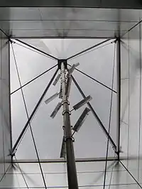 На подземных станциях, помимо стандартных противопожарных мер безопасности, в конструкции стеклянных пирамид используется электрический шпиндель. В результате основание пирамиды приподнято на 60 см, а в случае пожара шпиндель обеспечит необходимое удаление дыма во время эвакуации[16].