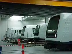 Было заказано и введено в эксплуатацию 34 трёхвагонных поезда[29] (из них на маршрутах, в рабочей зоне, находится не менее 18[30]). Длина такого поезда 39 метров, ширина — 2,65 м. Поезд создан под стандартную ширину колеи в 1,435 м. Высота пола над рельсом составляет 0,85 м, что совпадает с высотой платформы (в связи с этим, люди в инвалидных колясках или с коляской или велосипедом могут попасть в вагон без посторонней помощи). Полезная нагрузка поезда составляет 52 тонны. Максимальная скорость, которую может развить — 80 км/ч (максимальное ускорение — 1,3 м/с²). Средняя скорость с учётом остановок — 40 км/ч. Минимальный допустимый временной интервал между составами — 90 секунд[5].