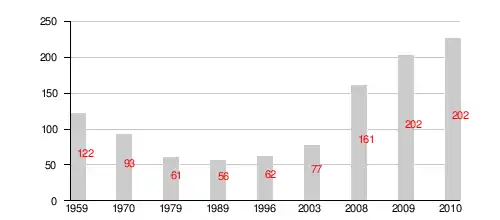 | Год | 1959 | 1970 | 1979 | 1989 | 1996 | 2003 | 2008 | 2009 | 2010 | 2011 |