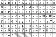 Графическое представление символов. Заштрихованные поля являются незанятыми кодами