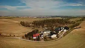Соседние населённые пункты: на северо-востоке — деревня Правочицы, на востоке — деревня Нукница, на юге — деревня Лейно коммуны Паншвиц-Кукау, на юго-западе — деревня Зейицы коммуны Паншвиц-Кукау и на северо-западе — административный центр коммуны Кроствиц[2].