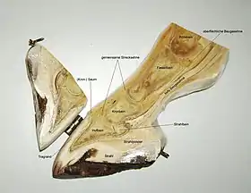 К копыту разные авторы относят либо роговой башмак копыта и все структуры, заключенные внутри него, либо только производные кожи (ороговевший эпидермис, дерма и подкожная клетчатка)[2].