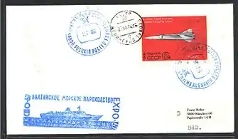 - Примеры конвертов корабельной почты СССР с названиями теплоходов на календарных штемпелях
