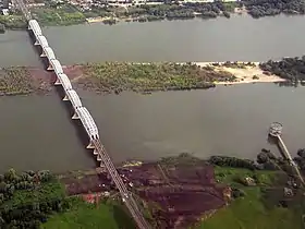 ![]() Вид на остров и Комсомольский железнодорожный мост. | |