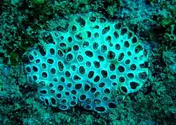 - внутрилагунные рифы — патч-рифы, пиннэкл-рифы и коралловые холмы. Изолированные постройки, которые возвышаются над дном в виде холмов и гряд. Их образуют быстрорастущие колонии кораллов Acropora, Stylophora, Pontes и др. Внутрилагунные ветвистые колонии обладают более тонкими и легко обламывающимися ветвями по сравнению аналогичными кораллами, обитающими вне лагуны. Между отмершими ветвями быстро поселяются моллюски, иглокожие, полихеты, поверхность обрастает корками известковых водорослей. Расщелины и ниши служат убежищем для рыб[34].
