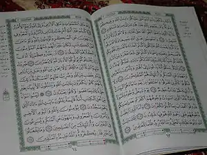 Кора́н (араб. الْقُرآن [qurˈʔaːn] — аль-К̣ур’а̄н) — священная книга мусульман написанная на арабском языке. Слово «Коран» происходит от арабского الْقُرآن «чтение вслух», «назидание»(Коран, 75:16-18)[1][2]. Согласно исламскому вероучению, он был передан путём откровения пророку Мухаммеду[3] и является Последним Заветом для человечества.