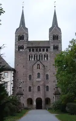 Корвей стоял на одной из самых людных дорог средневековой Германии, Хеллвеге, и оттого часто видел в своих стенах германских монархов, которые одаряли его привилегиями. В частности, он первым к востоку от Рейна и к югу от Фризии стал чеканить монеты. Монастырская церковь св. Петра, принадлежащая ко времени последних Каролингов, была перестроена при аббате Вибальде в середине XII века. Это один из древнейших памятников монастырского зодчества на территории Центральной Европы.