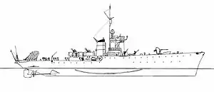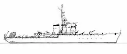 Летом 1941 года из нескольких вариантов был выбран проект корабля с небольшими размерами и скоростью, но с достаточно мощным противолодочным вооружением. Корабль классифицировали как «противолодочный корвет».